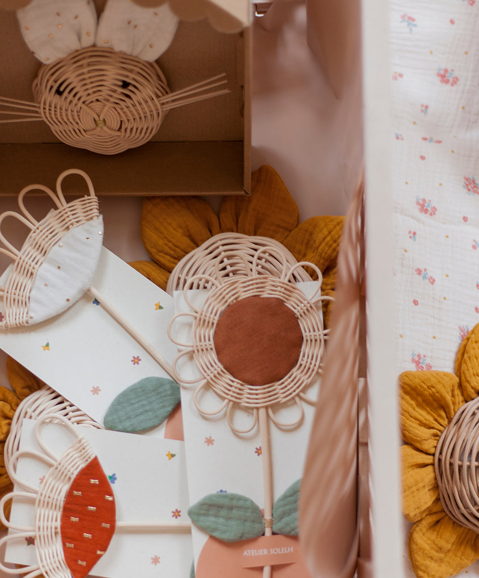 Atelier Solelh offers a wide range of handcrafted decorative objects: rattan mirrors, wall flowers, animal trophies, garlands, and many other poetic creations. Each product is designed to bring a unique, natural and warm touch to your interior.