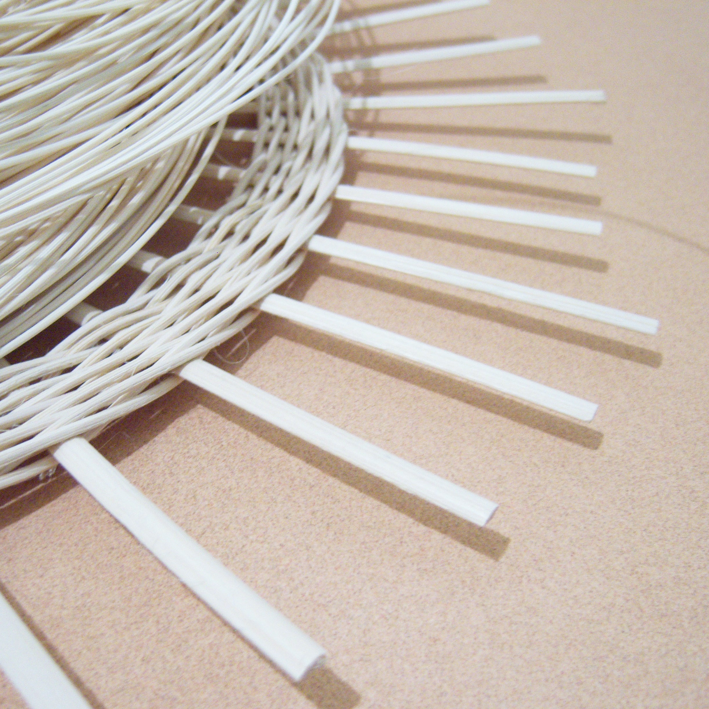 Au sein de notre atelier nous découpons, tressons, façonnons et assemblons entre elles les matières brutes telles que le rotin, le grès, le coton ou le lin.